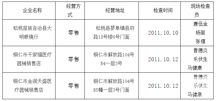 根据《医疗器械监督管理条例》和《医疗器械经营企业许可证管理办法》的规定,受省局委托,我局依照《贵州省医疗器械经营企业检查验收标准》组织现场检查,以下3家企业符合检查验收标准要求,现予以公示,公示期5天,请社会各界予以监督。