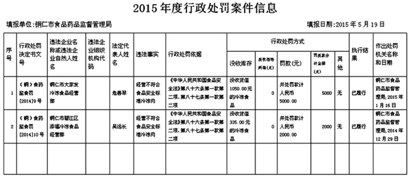 印江市场监督局2015年度行政处罚案件信息(7月17日)