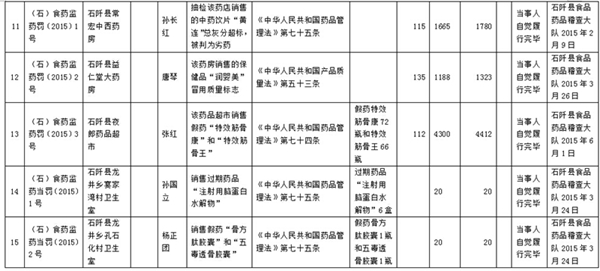 万山食品药品监督管理局2015年度行政处罚案件信息(8月3日)