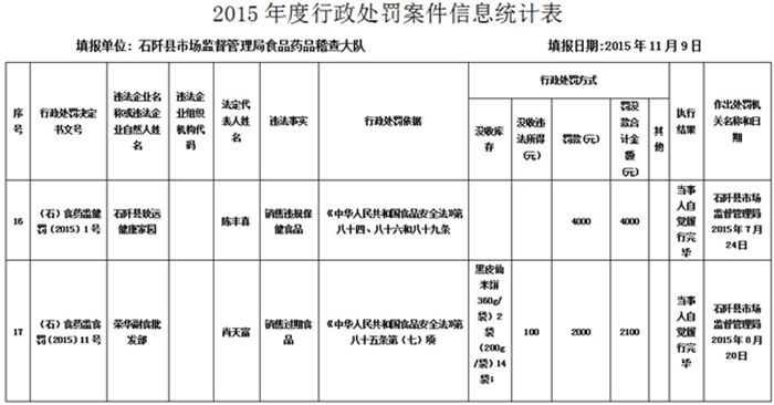 石阡县局 食品药品行政处罚案件信息公开列表 (备注:...