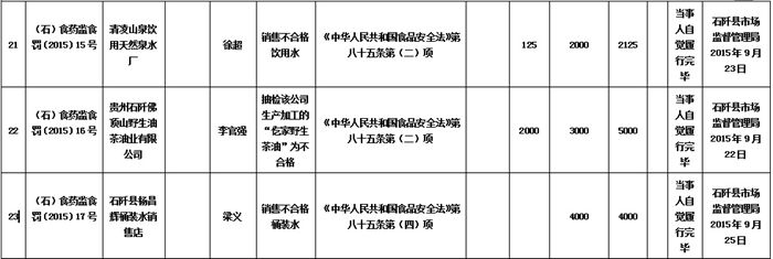 思南县市场监督管理局食品药品行政处罚案件信息公开2015...