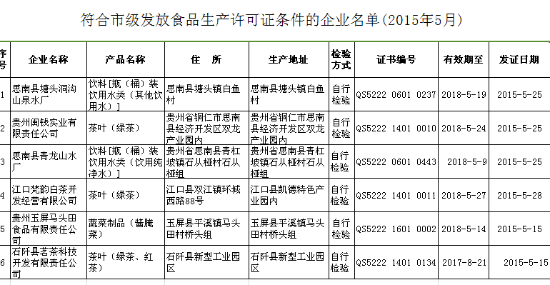 根据《中华人民共和国食品安全法》、《中华人民共和国工业产品生产许可证管理条例》、《食品生产许可管理办法》等法律法规的规定,经审查,以下6家食品生产企业符合食品生产许可证发证条件,现将有关信息予以公告