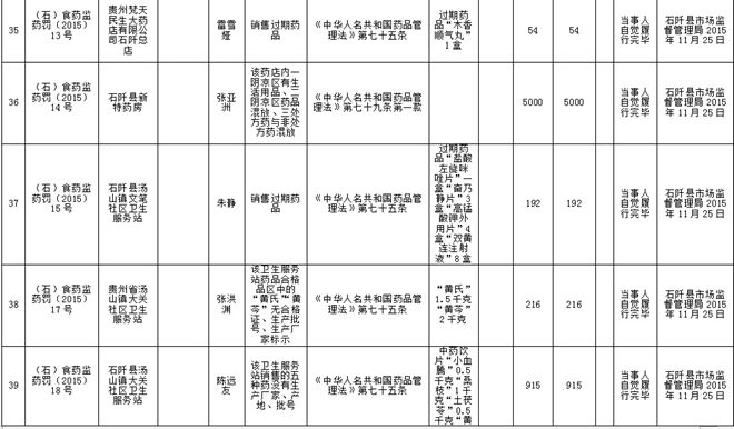 松桃苗族自治县市场监督管理局 食品药品行政处罚信息公开表