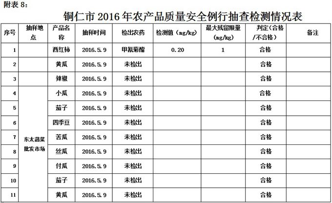 附:铜仁市2016年农产品质量安全例行抽查检测情况表