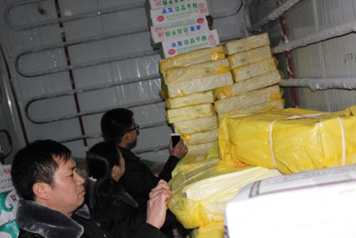 1月13日,铜仁市食药监局接到举报,称血站附近及睿力国际有冷库销售问题冷冻肉食品,但具体地址及经营者姓名不详。据此线索,市食药监局稽查局长田英亲自带队,率稽查执法人员对相关情况进行摸排,并请碧江区食药局、环北食药站工作人员以及市中、灯塔派出所民警协助开展工作。