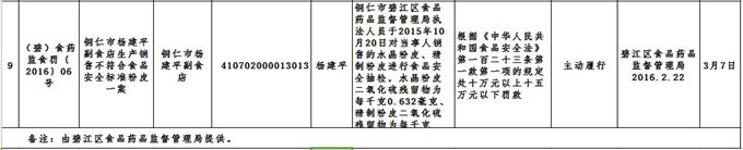 碧江区食药监局2015年度行政处罚案件信息
