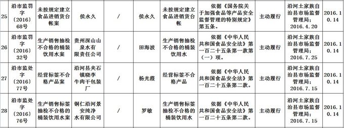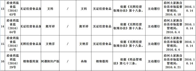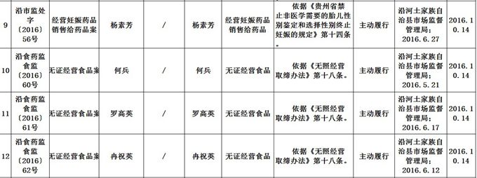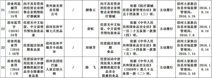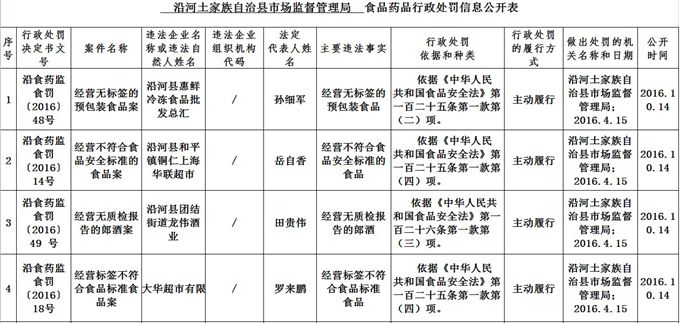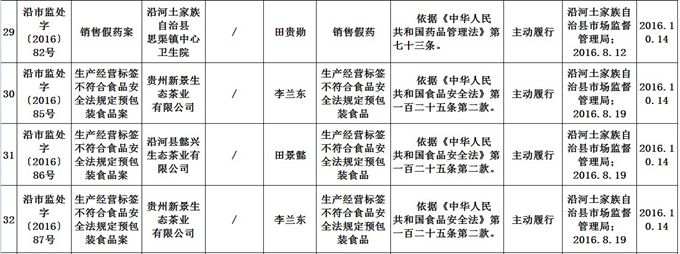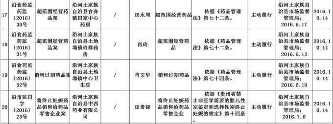 沿河土家族自治县市场监督管理局 食品药品行政处罚信息公开表