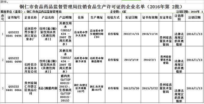 附件:贵州省食品药品监督管理局注销食品生产许可证的企业名单(2016年第2批)