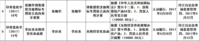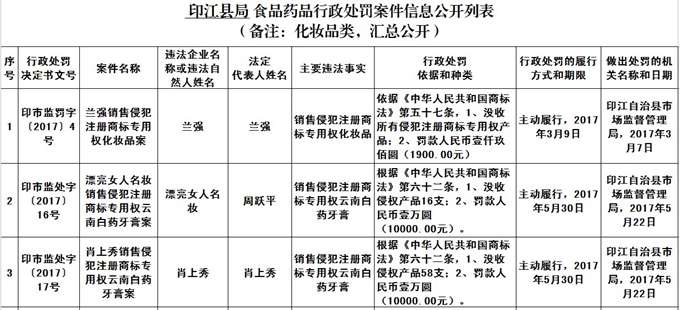 印江县局 食品药品行政处罚案件信息公开列表 (备注:化妆品类,汇总公开)