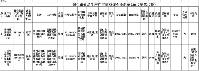 附件:铜仁市食品生产许可证获证企业名单(2017年第17批)