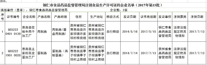 根据《中华人民共和国行政许可法》和《中华人民共和国食品安全法》、《食品生产许可管理办法》有关规定,鉴于企业申请延续换证。证号由原“QS”变为“SC”,决定将以下2家企业QS予以注销(名单见附件)。(2017年第15批)