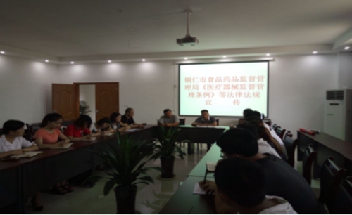 7月19日,铜仁市食药监局器械科廖显明科长一行到铜仁市众博、贵州宏都医疗器械科技有限公司开展医疗器械经营管理现场督查,同时组织两公司职工38人开展《医疗器械监督管理条例》等法律法规的普法宣传。