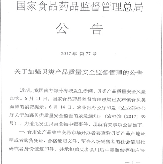 国家食品药品监督管理总局公告(2017年第77号)