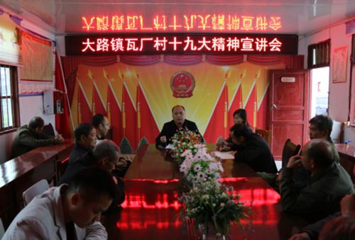 宣讲组强调:认真学习宣传贯彻党的十九大精神,是当前和今后一个时期的首要政治任务,村支两委要深刻领会十九大精神中蕴含的新思想、新观点、新理论,以习近平总书记新时代中国特色社会主义思想为指引,把十九大精神落实到当前脱贫攻坚任务中去,推动党的精神在基层落地生根,开花结果。要抓牢抓实脱贫攻坚这一头等大事,真正把关心群众落实到行动上。要结合学习领会党的十九大精神,认真思考谋划如何推进乡村振兴发展的问题,积极探索发展乡村产业和促进农民增收的新路子,争取让全村贫困户尽早实现脱贫致富,坚决打赢脱贫攻坚这场硬仗。
