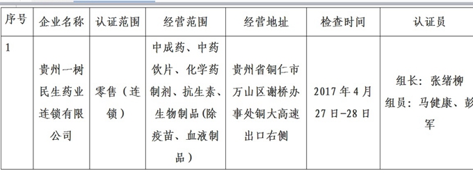 铜仁市药品经营企业GSP认证公示公告