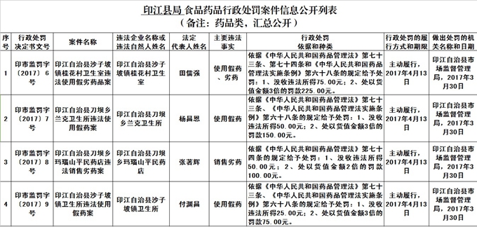 印江县局 食品药品行政处罚案件信息公开列表 (备注:药品类,汇总公开)