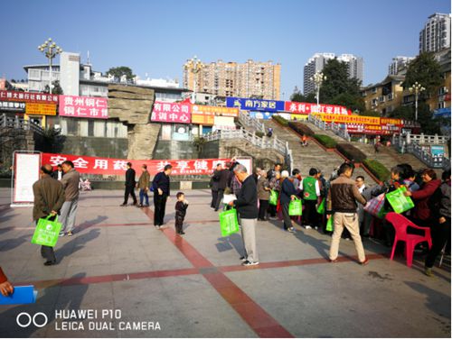 市局机关、局直属单位、碧江区、万山区食品药品监督管理局机关工作人员现场发放科普宣传材料并接受群众的问询,铜仁市辖区内药品、医疗器械生产、经营企业和市各大医院的药学专家在现场开展咨询、义诊活动。此次活动共发放宣传折页、手册约1700份,接受现场约80位群众的用药咨询,相关单位的药学、医学专家为约300位群众进行了免费义诊。